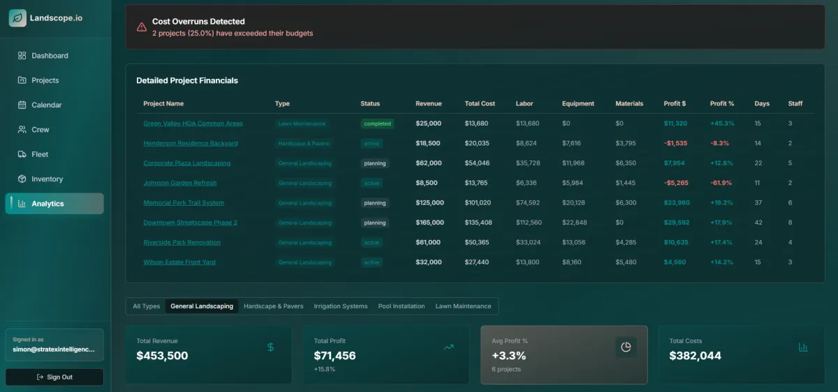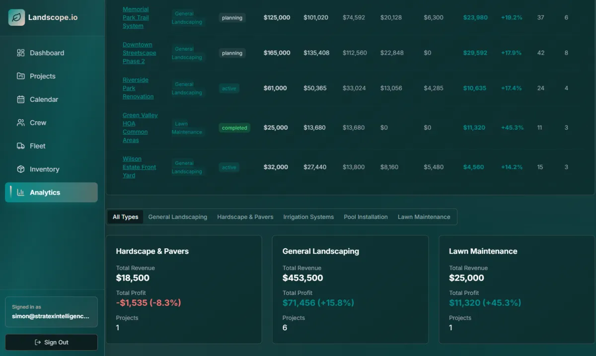 Real-time scheduling + automatic profitability tracking for landscaping companies.